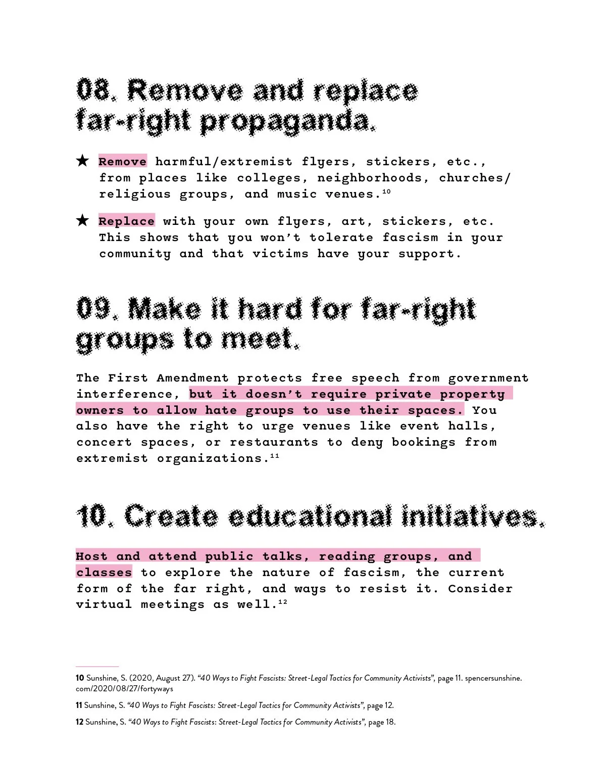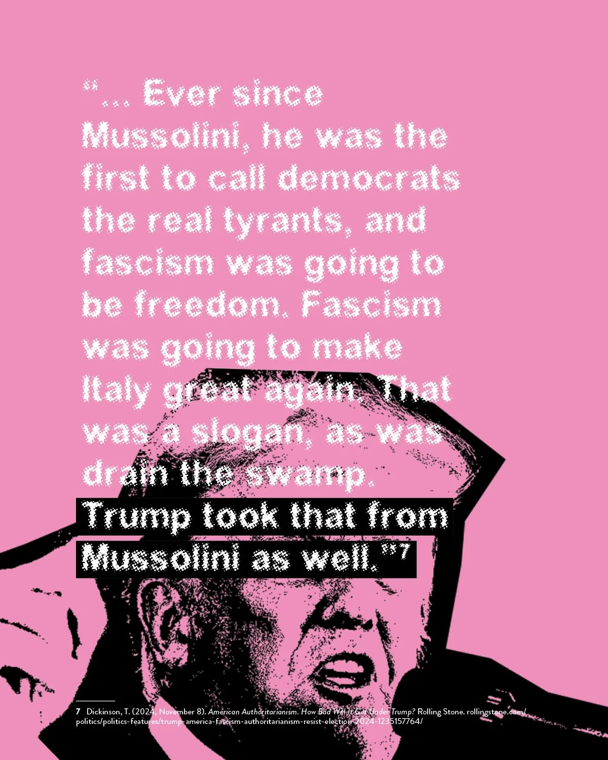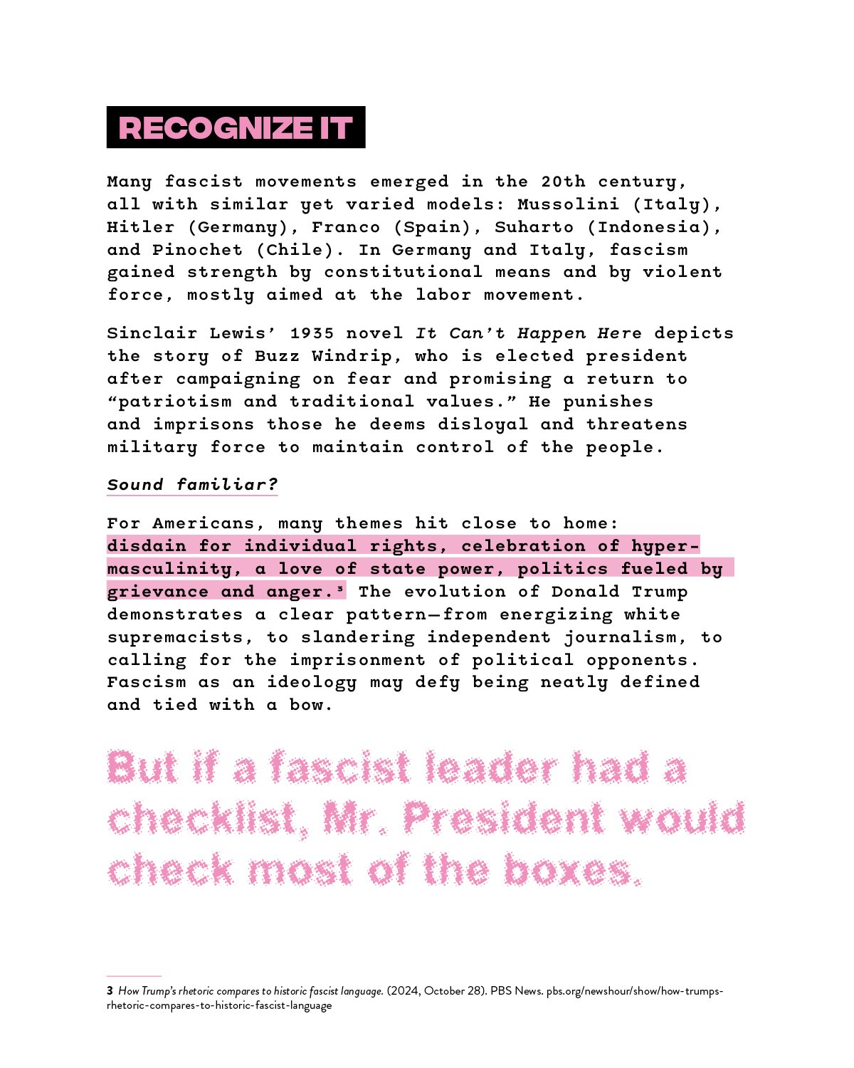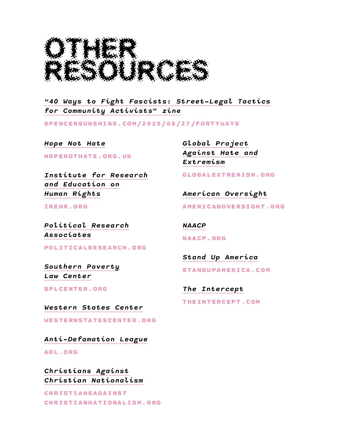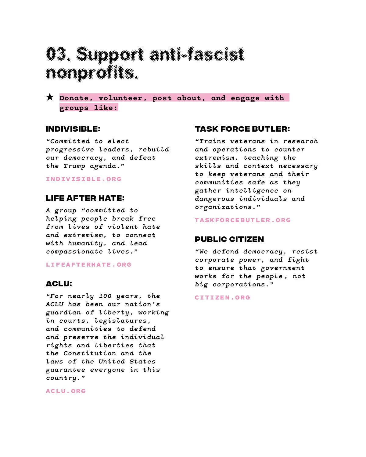 An informational zine on how to define, recognize, and take action against fascism. Created in collaboration with Emily Andrews, a writer with an MFA in creative nonfiction. This zine seeks to educate and arm those in the fight against fascism.