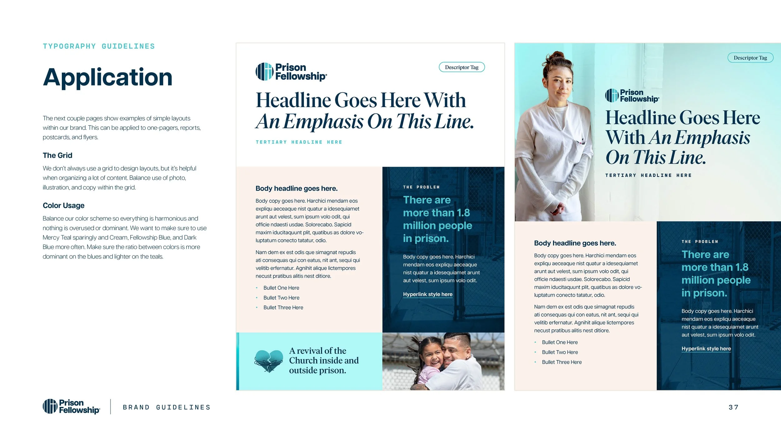 The design team worked to update the new Prison Fellowship logo, and I worked on creating typography, color scheme, layout, and graphic styles. Materials were outdated and didn’t align with the vision: A revival of the Church inside and outside prison that brings justice, mercy, and hope to our culture.